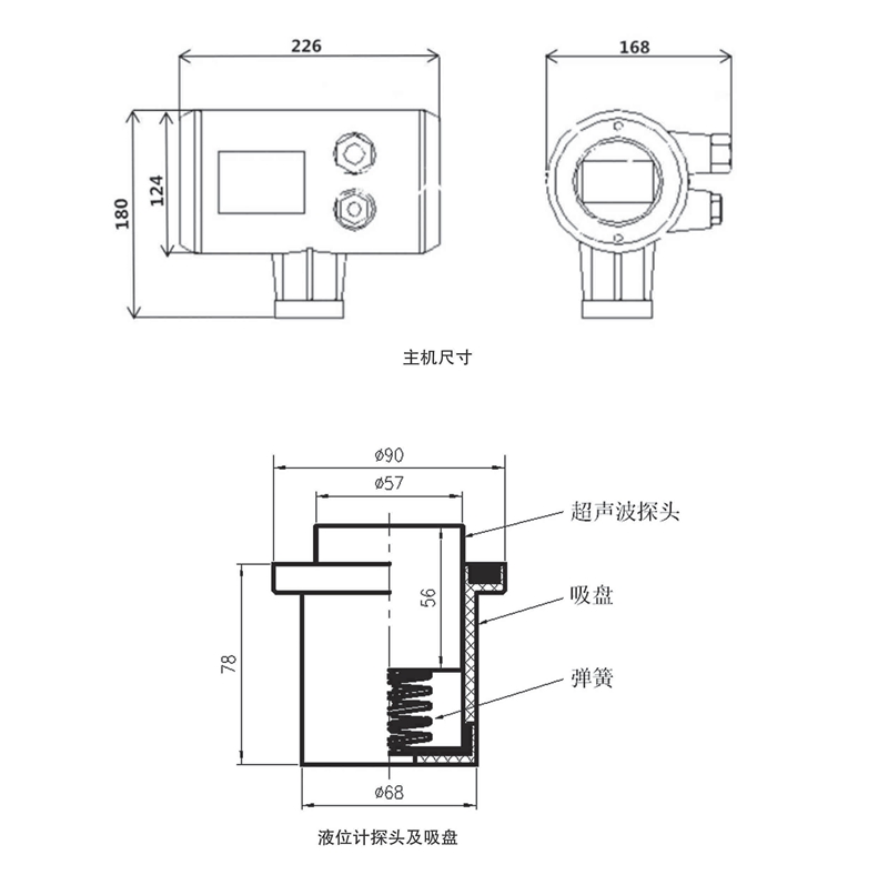 超聲波傳感器(探頭)在容器外部利用磁力吸附式,無需對被測容器開孔,就可以實現(xiàn)液位測控。